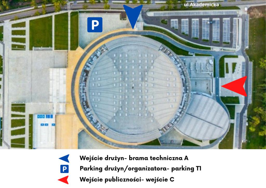 d) Zawodniczki, zawodnicy, trenerzy mają wyznaczone specjalne wejście do Areny Gliwice. Wejście odbywać się będzie za okazaniem identyfikatora.