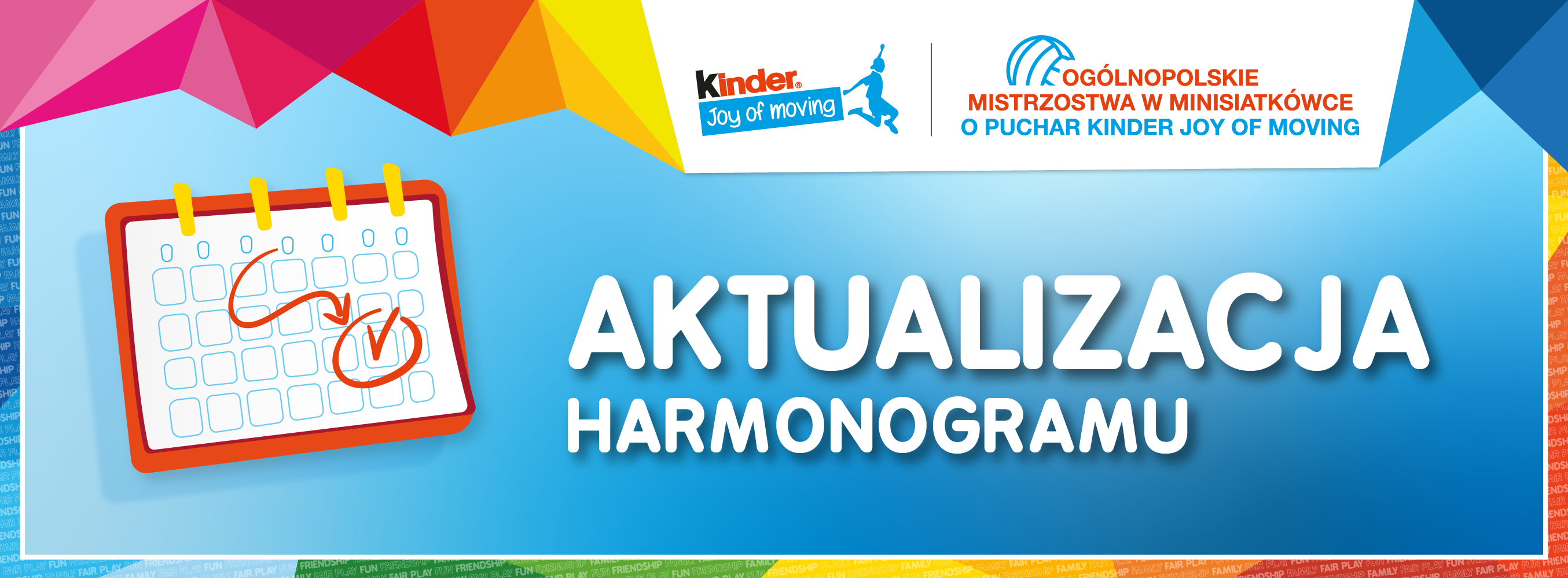 Z wielką przyjemnością informujemy, że na oficjalnej stronie rozgrywek Ogólnopolskich Mistrzostw w Minisiatkówce im. Marka Kisiela o Puchar KINDER Joy of moving został zaktualizowany harmonogram turniejów na poziomie wojewódzkim, czyli Turniejów Miejskich, Eliminacji Wojewódzkich i Finałów Wojewódzkich sezonu 2022/23.