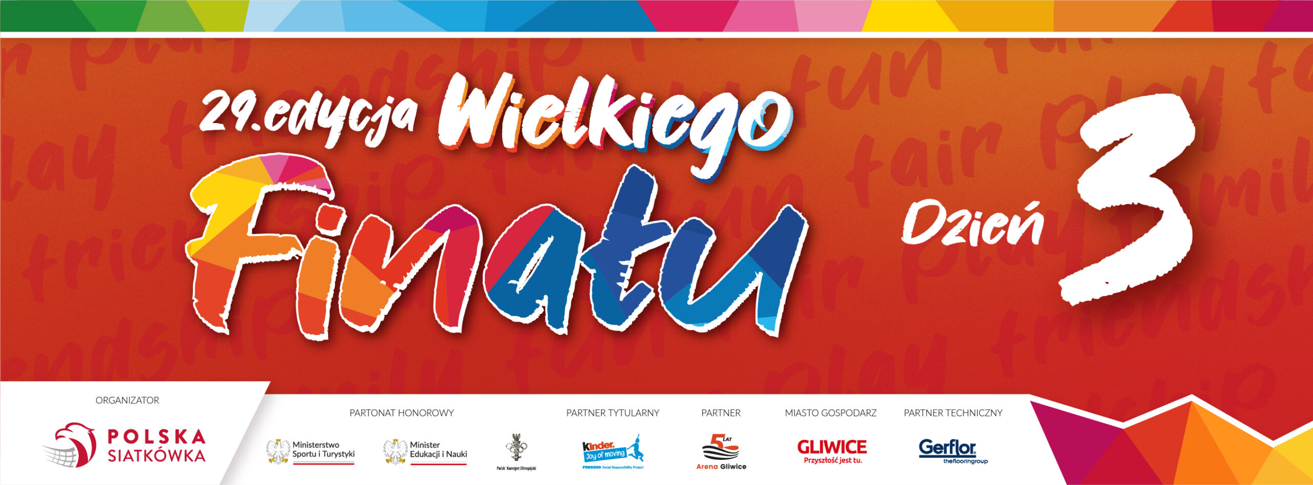 Niedziela to trzeci dzień 29. Wielkiego Finału Ogólnopolskich Mistrzostw w Minisiatkówce im. Marka Kisiela o Puchar KINDER Joy of moving rozgrywanego w Gliwicach. Drużyny rozgrywają spotkania o poszczególne miejsca. Turniej rozgrywany jest od piątku do niedzieli bierze udział 192 zespoły w kategorii "2", "3", "4" dziewcząt i chłopców reprezentujących szesnaście województw.