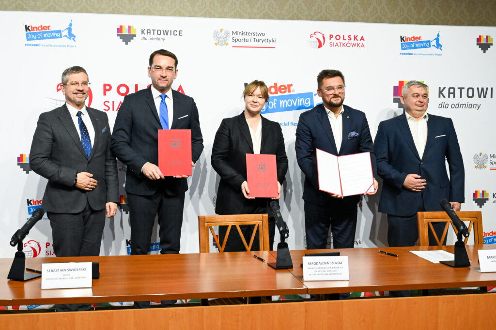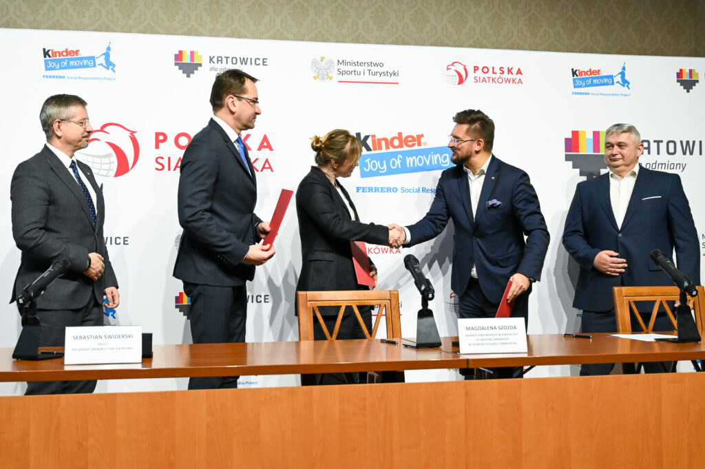 W tej wyjątkowej konferencji prasowej udział wziął Marcin Krupa - prezydent miasta Katowice, Sebastian Świderski - prezes Polskiego Związku Piłki Siatkowej oraz Magdalena Szozda - Brands Partnership & KINDER Joy of moving Manager w Ferrero Polska Commercial. Podczas tego wyjątkowego spotkania zostało podpisane porozumienie dotyczące organizacji 30. Wielkiego Finału Ogólnopolskich Mistrzostw w Minisiatkówce im. Marka Kisiela o Puchar KINDER Joy of moving, który zostanie rozegrany w ostatnich dniach czerwca 2024 roku. Pragniemy również podkreślić, że umowa na organizację Wielkiego Finału w Katowicach została podpisana na trzy najbliższe lata.