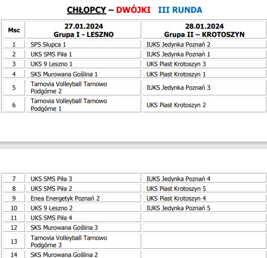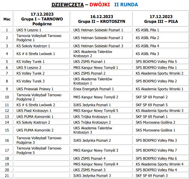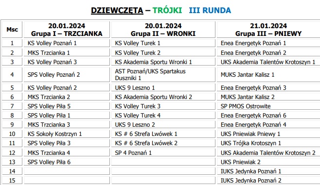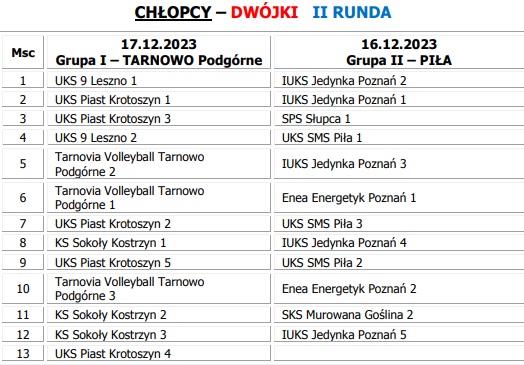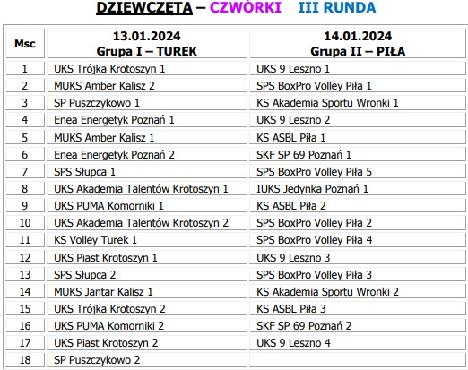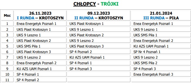 Poniżej przedstawiamy klasyfikację końcówką w kategorii "2", "3", "4" dziewcząt i chłopców po zakończeniu poszczególnych etapów rozgrywek Turniejów Miejskich.