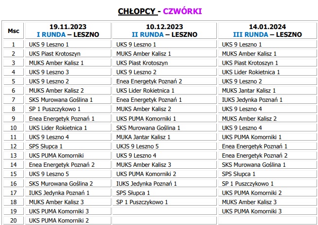 - Terminarz i system I etapu rozgrywek dostosowany był do ilości zespołów w poszczególnych kategoriach wiekowych. Rywalizacja sportowa toczyła się w każdej części naszego województwa od północy po samo południe Wielkopolski. Z turnieju miast wyłoniono drużyny, które awansowały do kolejnego etapu – eliminacji wojewódzkich - powiedział Zbigniew Zieliński, koordynator województwa wielkopolskiego.