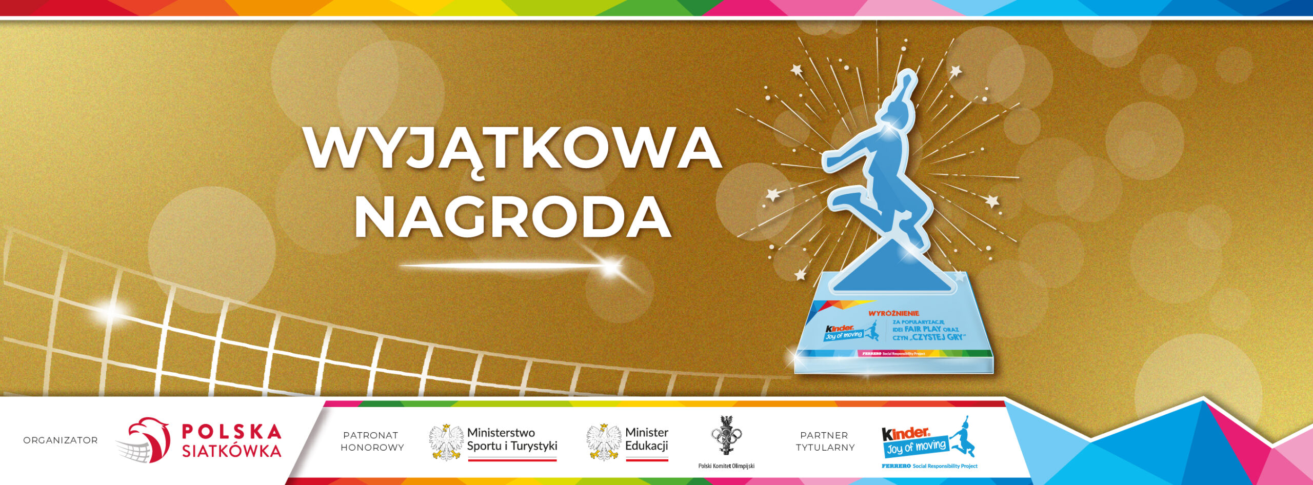 Podczas tegorocznego Wielkiego Finału KINDER Joy of moving zostaną przyznane dwa wyróżnienia - pierwsze za promowanie zasad uczciwego współzawodnictwa w sporcie i drugie za czyn „czystej gry”. Nagroda fair play za popularyzację wartości fair play honoruje trenera/opiekuna drużyny, który wychowuje zawodniczki i zawodników w oparciu o uniwersalne wartości sportu, jak fair play. Nagroda przyznana zostanie za wyjątkową formę popularyzacji fair play.