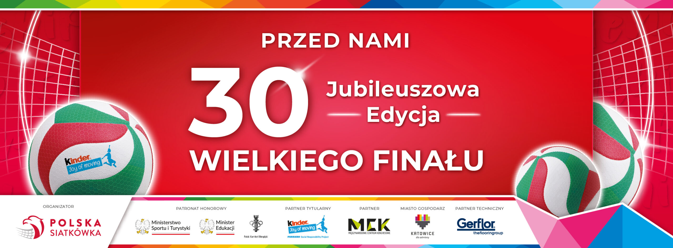 Ogólnopolskie Mistrzostwa w Minisiatkówce im. Marka Kisiela o Puchar KINDER Joy of moving od lat rozgrywane są pod Honorowym Patronatem Ministerstwa Sportu i Turystyki, Ministerstwa Edukacji Narodowej oraz Polskiego Komitetu Olimpijskiego. Partnerem tytularnym jest Grupa Ferrero w Polsce, która prowadzi program KINDER Joy of moving. Partnerem 30. Wielkiego Finału jest Międzynarodowe Centrum Kongresowe, a gospodarzem miasto Katowice. Dodać jeszcze należy, że Parterem technicznym tegorocznego Wielkiego Finału jest Gerflor Polska.