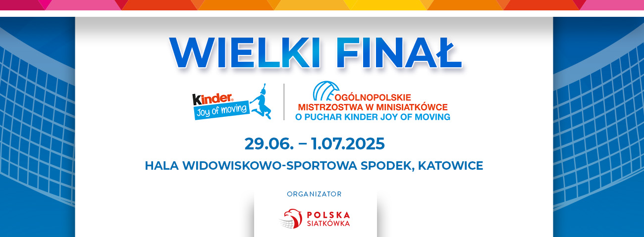 Drugi rok z rzędu Wielki Finał Mistrzostw odbędzie się w Katowicach. Od 29 czerwca do 1 lipca 2025 roku finaliści 31. Wielkiego Finału KINDER Joy of moving w kategorii: „singli”, „dwójek”, „trójek’, „czwórek” dziewcząt i chłopców swoje mecze rozgrywać będą w legendarnym „Spodku”, który przez reprezentantów Polski określany jest mianem „mekki polskiej siatkówki”.